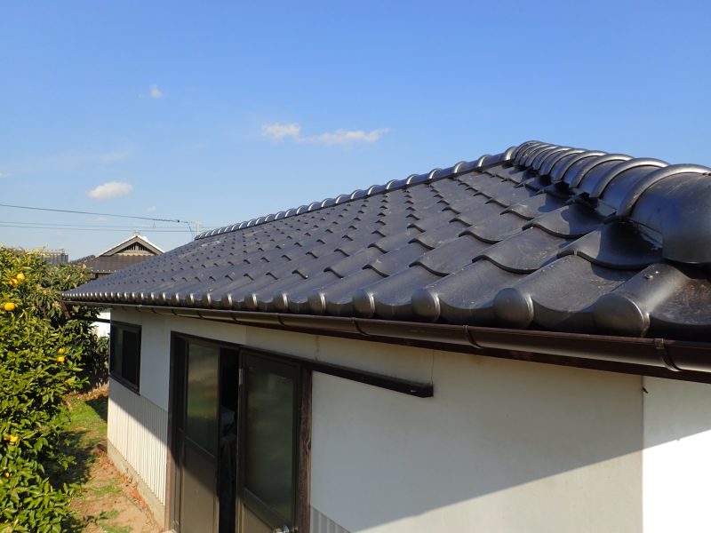物置を和瓦に葺き替えすると 寄棟(よせむね) admin | 2017 年 1 月 6 日 ○築40年超の物置の屋根 部分的に雨漏りしていた。また、瓦のずれも大きくなり、下地も劣化が進んで手入れの時期にきていた。 屋根塗装は見ての通り一度もしていない。屋根の状態と経過年数を勘案し安心最優先で、葺き替え。 屋根形状 切妻 (きりづま) 葺き替え工事前 葺き替え工事後 こんな感じです 三州瓦メーカー 新東(株) 和瓦 色 京銀